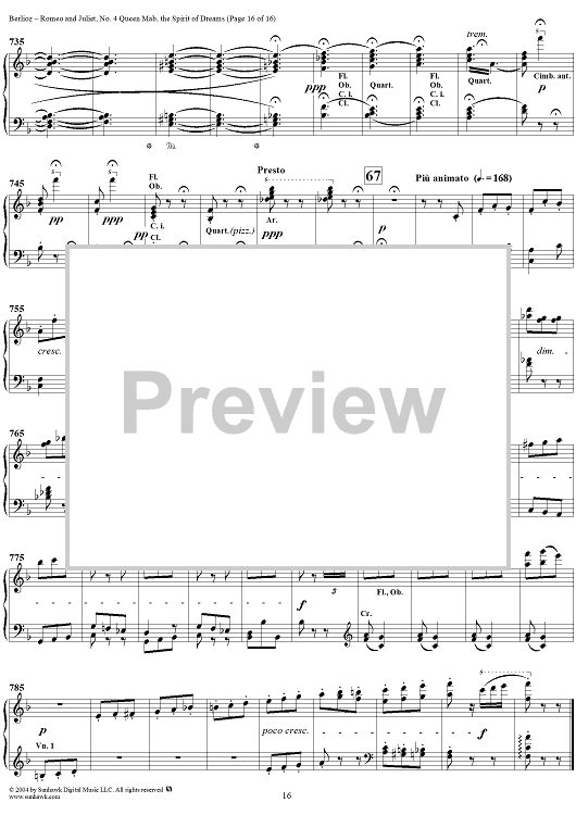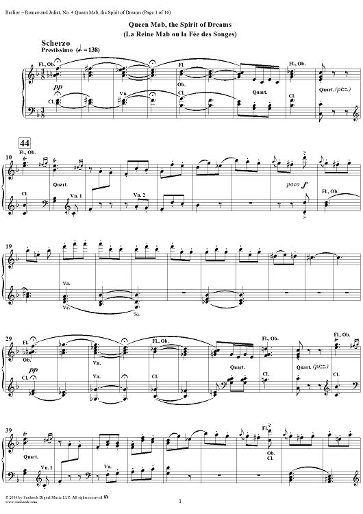 "Romeo and Juliet, No. 4. Queen Mab, the Spirit of Dreams" Sheet Music by Hector Berlioz