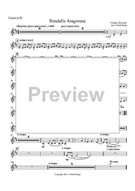 "Rondalla Aragonesa - Cornet in Bb" Sheet Music by Enrique Granados