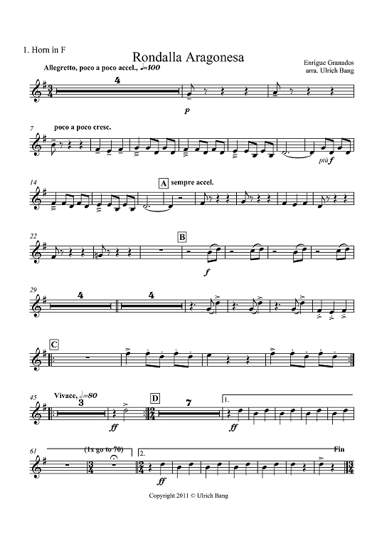 Digital Sheet Music for Rondalla Aragonesa - Horn in F 1 by , Ulrich Bang, Enrique Granados scored for Brass Ensemble; id:421005