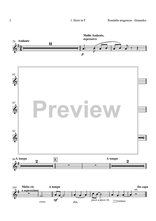 "Rondalla Aragonesa - Horn in F 1" Sheet Music by Enrique Granados