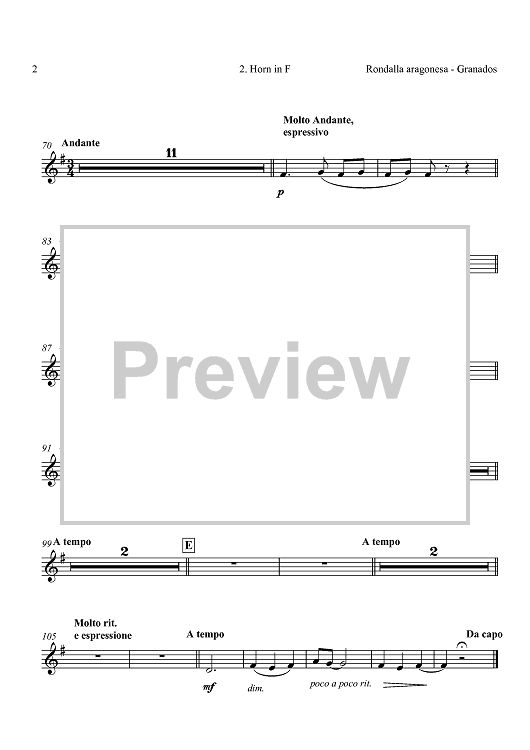 "Rondalla Aragonesa - Horn in F 2" Sheet Music by Enrique Granados