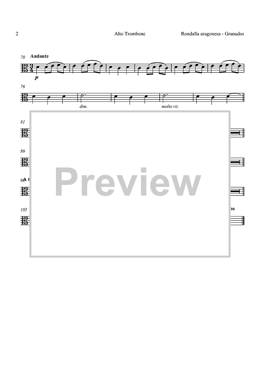 Digital Sheet Music for Rondalla Aragonesa - Tenor/Alto Trombone by , Ulrich Bang, Enrique Granados scored for Brass Ensemble; id:421008