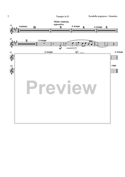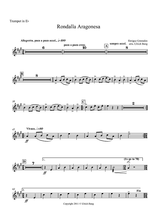 "Rondalla Aragonesa - Trumpet in Eb" Sheet Music by Enrique Granados
