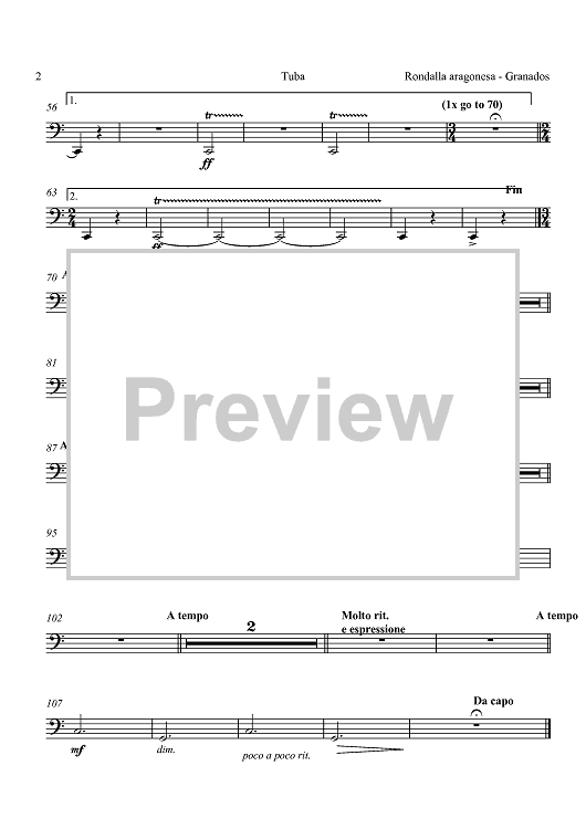"Rondalla Aragonesa - Tuba" Sheet Music by Enrique Granados