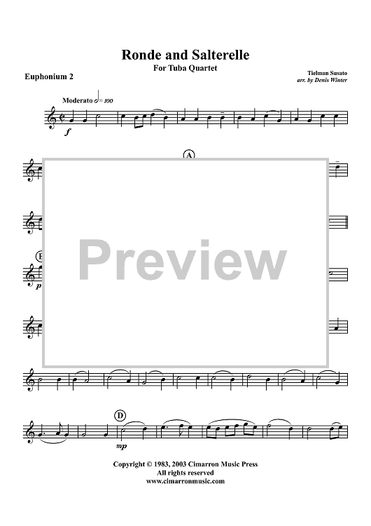 Digital Sheet Music for Ronde and Salterelle - Euphonium 2 BC/TC by Tielman Susato, Denis Winter scored for Tuba Quartet; id:316214
