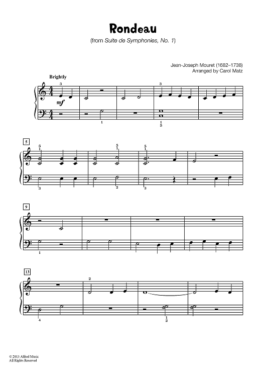 Digital Sheet Music for Rondeau (from Suite de Symphonies, No. 1) by Jean-Joseph Mouret, Carol Matz scored for Piano; id:451454