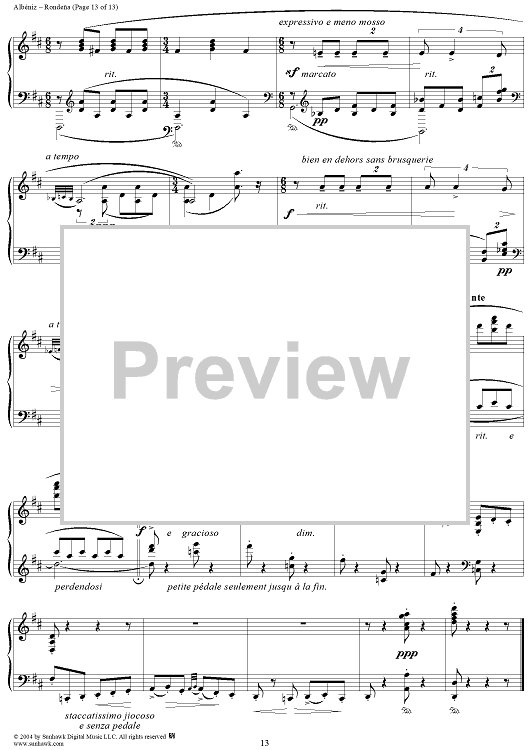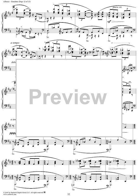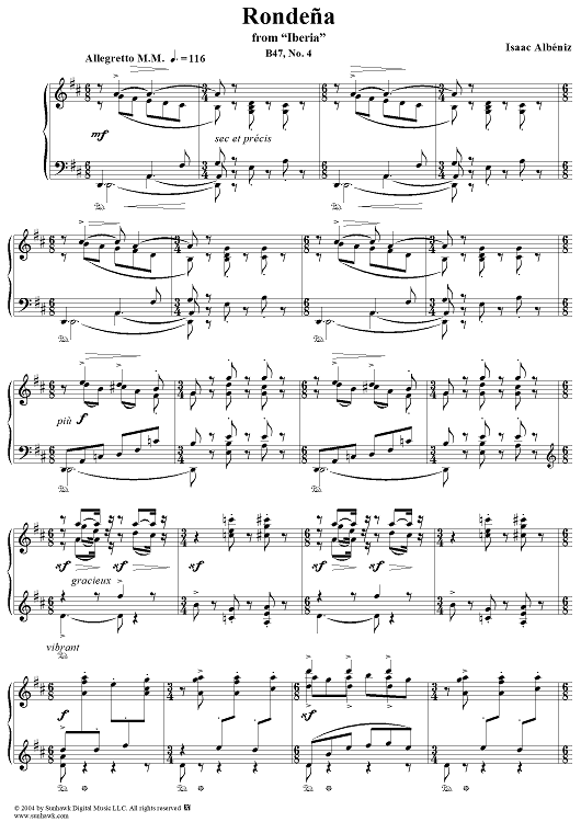 Digital Sheet Music for Rondeña by Isaac Albéniz scored for Piano Solo; id:293691