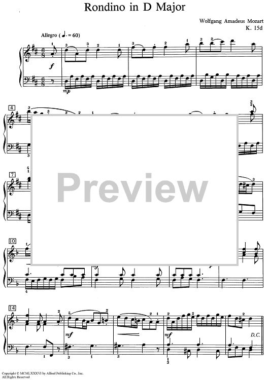 "Rondino in D Major [K. 15d]" Sheet Music by Wolfgang Amadeus Mozart