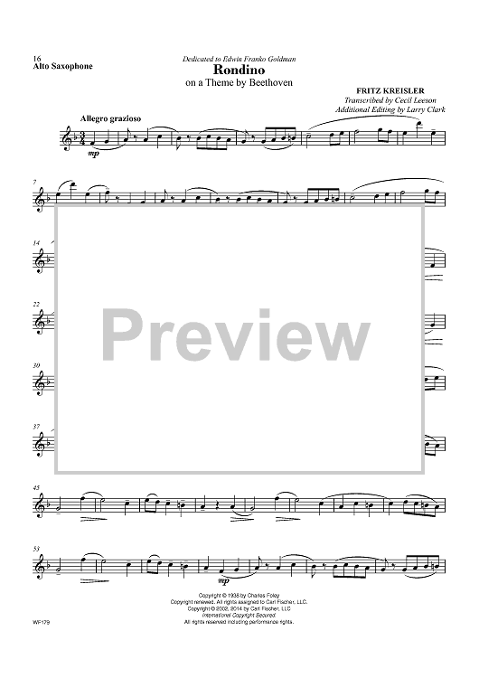 Digital Sheet Music for Rondino on a Theme by Beethoven by Fritz Kreisler, Carl Leeson scored for Eb Alto Sax/Piano; id:451704