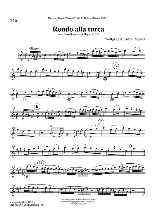 Digital Sheet Music for Rondo alla turca - from Piano Sonata in A Major, K. 331 - Part 1 Flute, Oboe or Violin by , Wolfgang Amadeus Mozart, Daniel Kelley scored for Instrumental Trio; id:422593