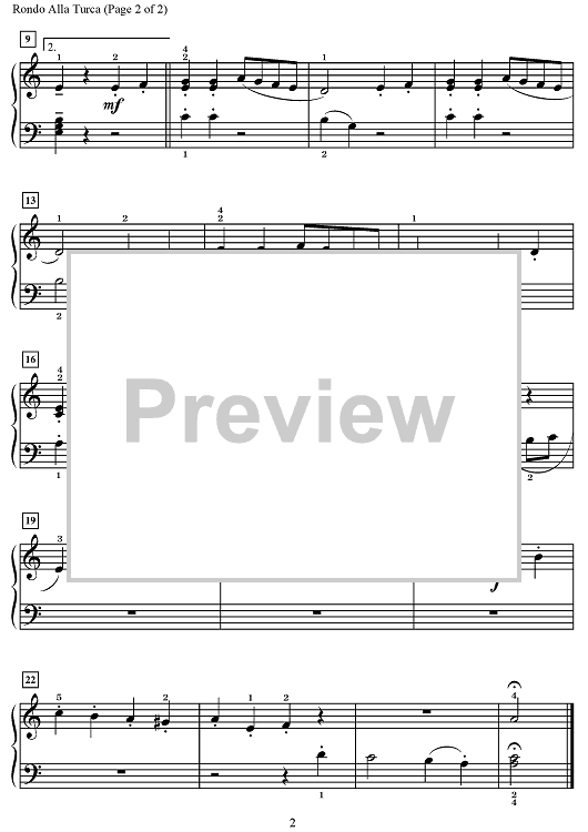 Digital Sheet Music for Rondo Alla Turca (from Sonata in A, K. 331) by Wolfgang Amadeus Mozart, Carol Matz scored for Piano; id:471228