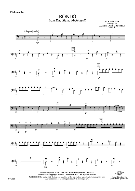 Digital Sheet Music for Rondo from Eine Kleine Nachtmusik - Violoncello by Wolfgang Amadeus Mozart, Carrie Lane Gruselle scored for String Orchestra; id:421782