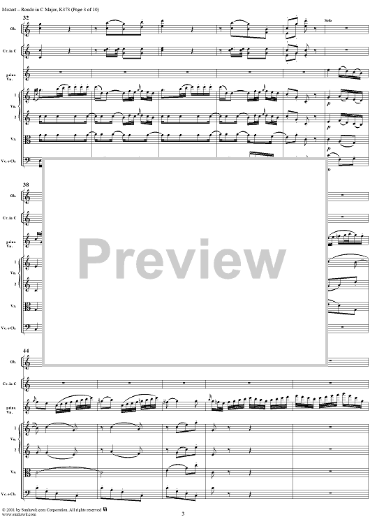 "Rondo in C Major, K373 - Full Score" Sheet Music by Wolfgang Amadeus Mozart