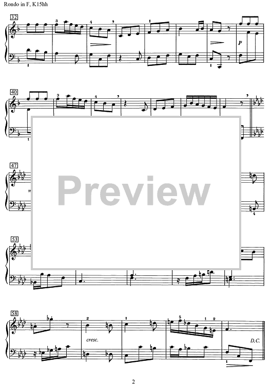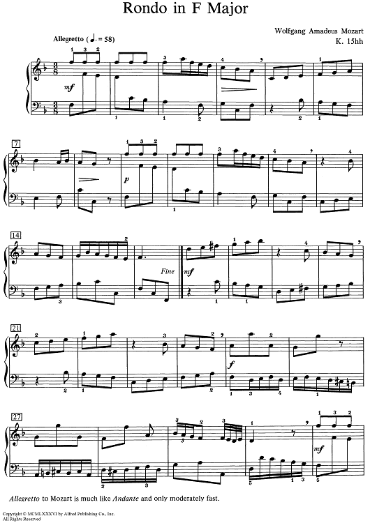 Digital Sheet Music for Rondo in F Major [K. 15hh] by Wolfgang Amadeus Mozart scored for Piano Solo; id:506912
