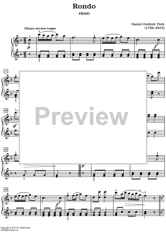 Digital Sheet Music for Rondo by Daniel Türk scored for 1 Piano, 4 Hands; id:501791