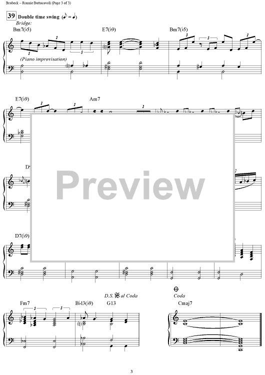 "Ronnie Buttacavoli - Piano" Sheet Music by Dave Brubeck