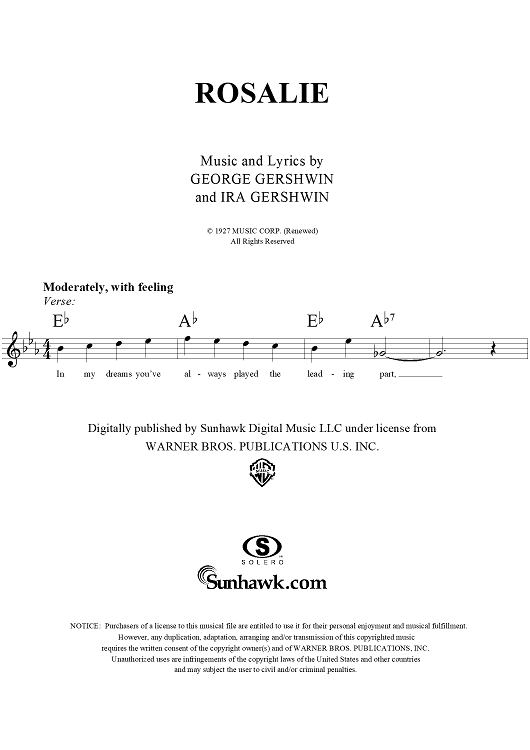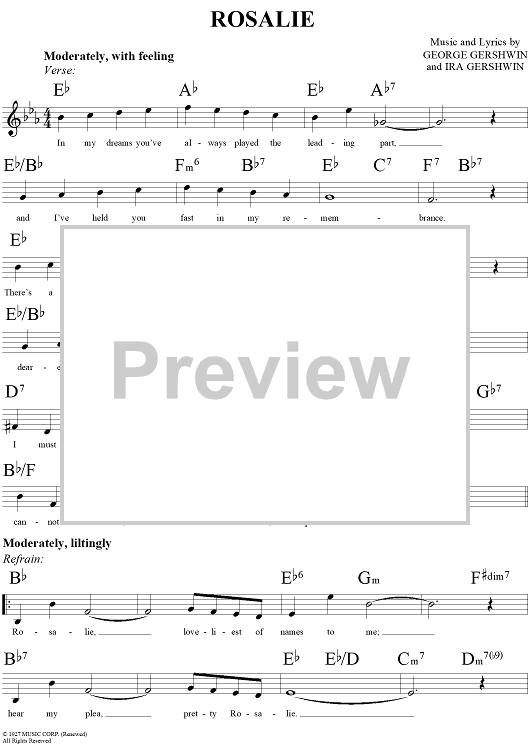 Digital Sheet Music for Rosalie by , George Gershwin, Ira Gershwin scored for Lead Sheet; id:283716