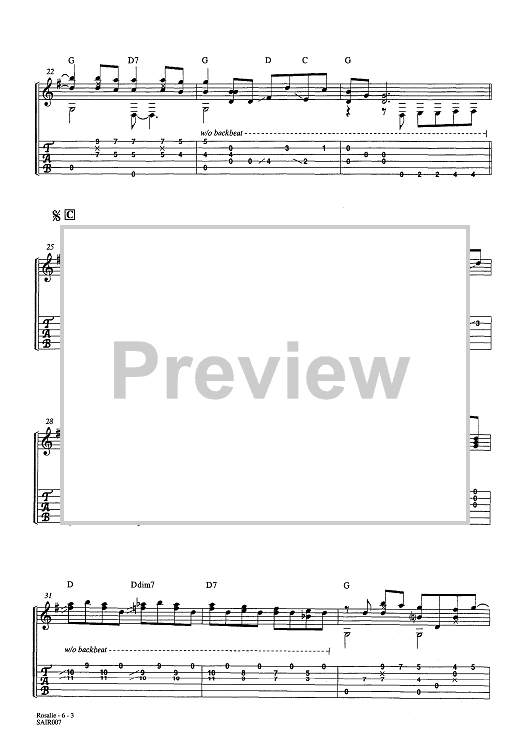 Digital Sheet Music for Rosalie (With Embedded Audio) by Traditional, Mike Dowling scored for Guitar Tab; id:451765