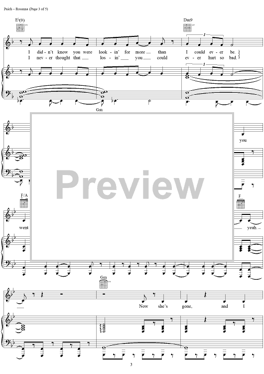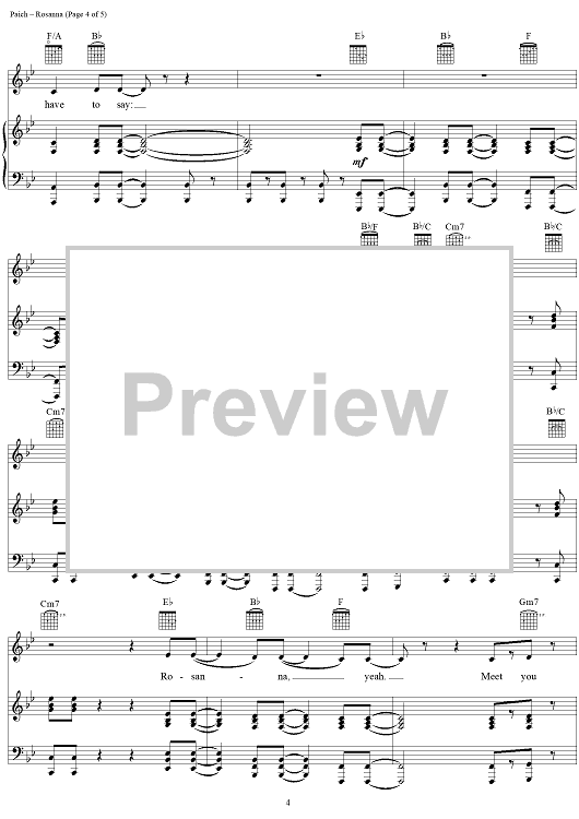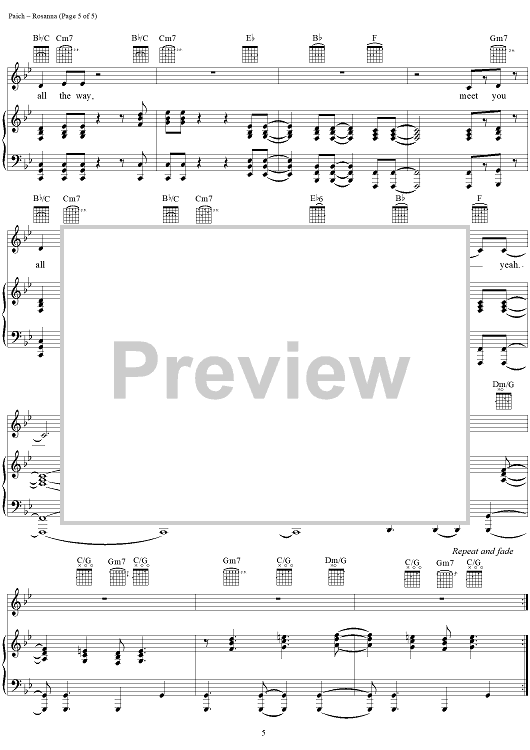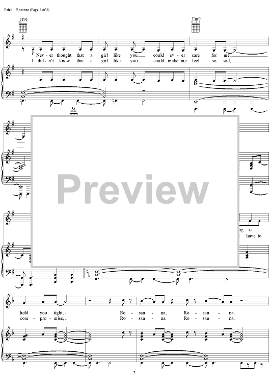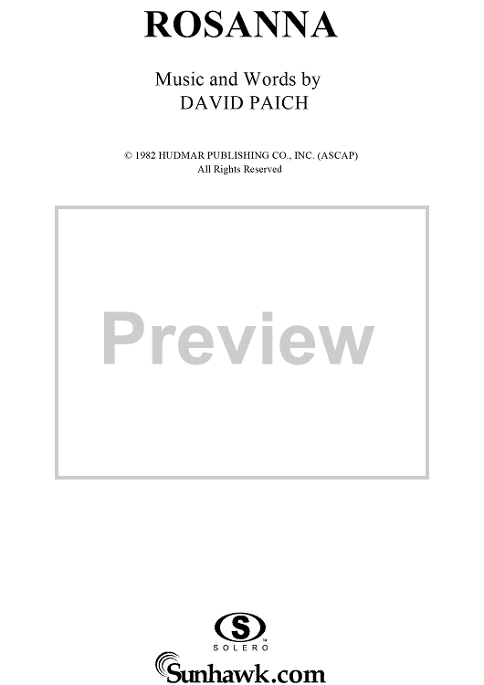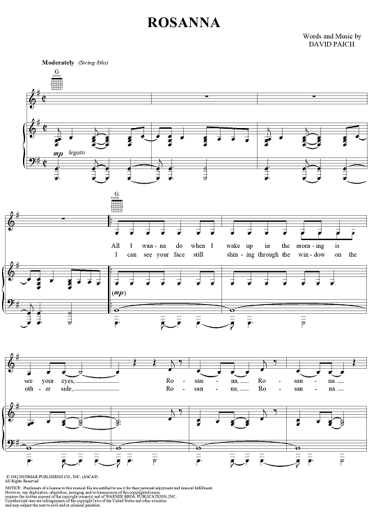 Digital Sheet Music for Rosanna by Toto, David Paich scored for Piano/Vocal/Chords; id:112193