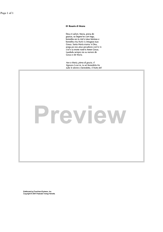 "Rosario di Meana - Lyrics" Sheet Music by Antonio Sanna
