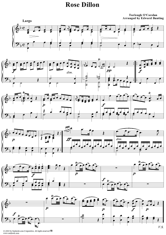 Digital Sheet Music for Rose Dillon by , Turlough O'Carolan, Edward Bunting scored for Piano Solo; id:165119