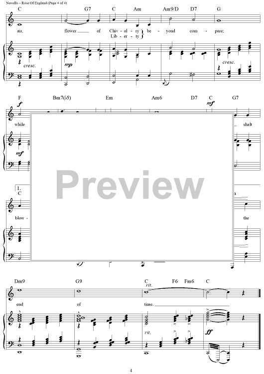 Digital Sheet Music for Rose Of England by Ivor Novello, Christopher Hassall scored for Piano/Vocal/Chords; id:426764