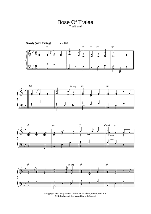 Digital Sheet Music for Rose Of Tralee by scored for Piano; id:385533