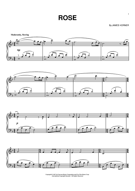 Digital Sheet Music for Rose by James Horner scored for Piano; id:368809