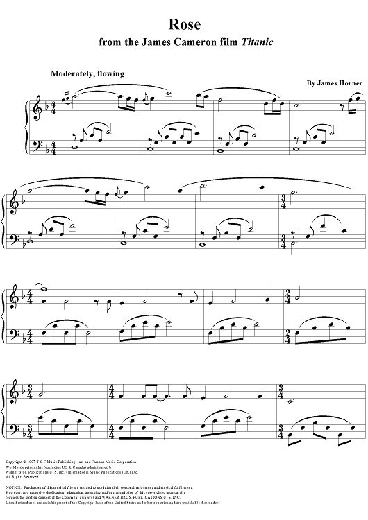 Digital Sheet Music for Rose by James Horner scored for Piano Solo; id:95764