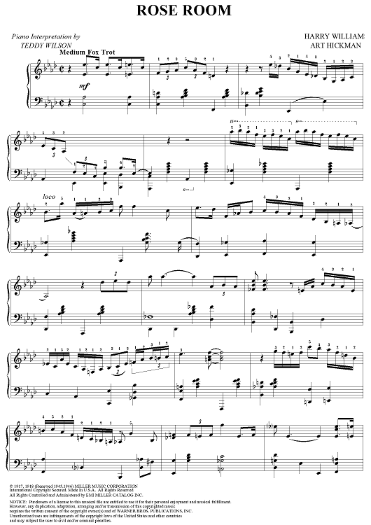 Digital Sheet Music for Rose Room by Teddy Wilson, Art Hickman, Harry Williams scored for Piano Solo; id:263963