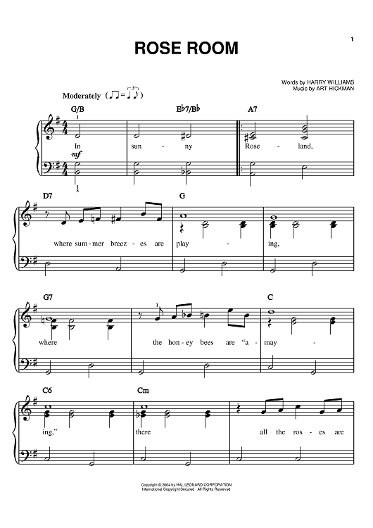 Digital Sheet Music for Rose Room by Django Reinhardt, Benny Goodman, Art Hickman, Harry Williams, Charlie Christian scored for Easy Piano; id:373868