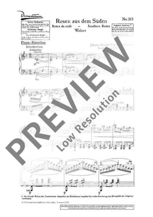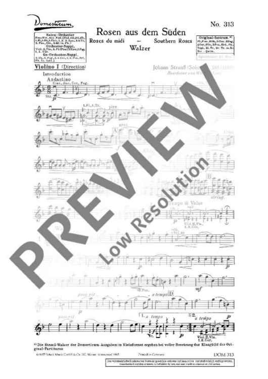 Digital Sheet Music for Rosen aus dem Süden - Score and Parts by Johann Strauß (Son) scored for Salon Orchestra; id:488161