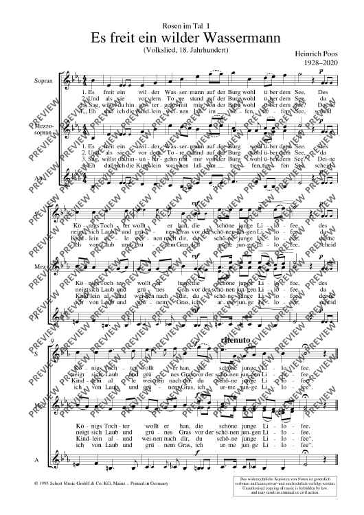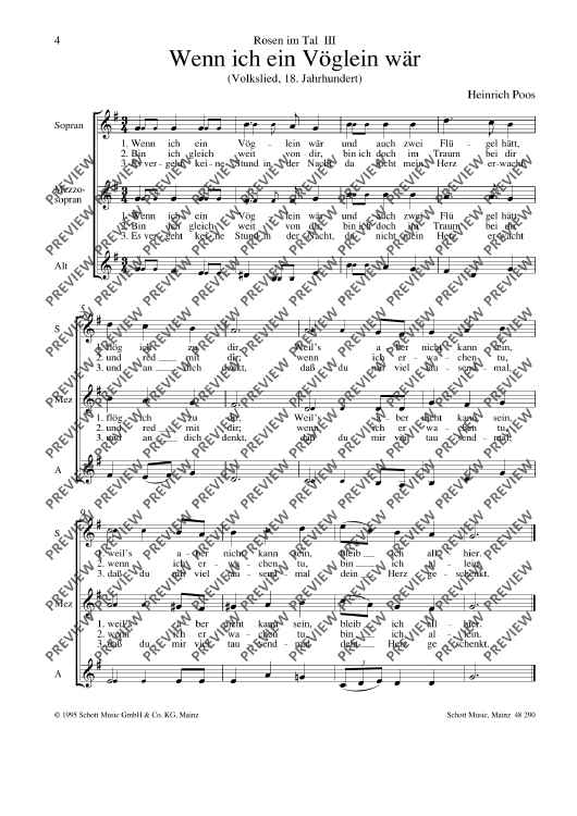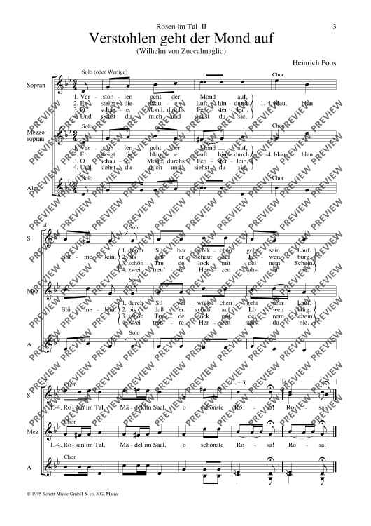 Digital Sheet Music for Rosen im Tal - Choral Score by Heinrich Poos scored for Female Choir (smeza); id:479109