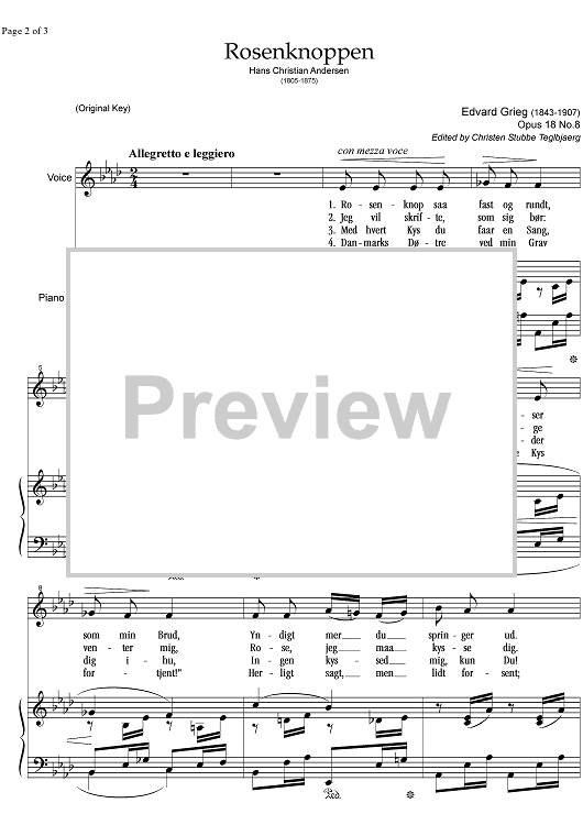 Digital Sheet Music for Rosenknoppen Op.18 No. 8 by , Edvard Grieg scored for Mezzo-soprano or Baritone/Piano; id:344102