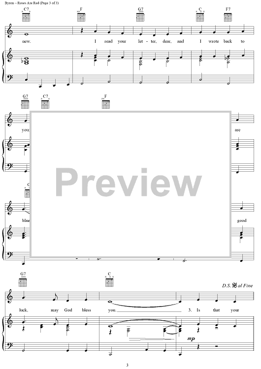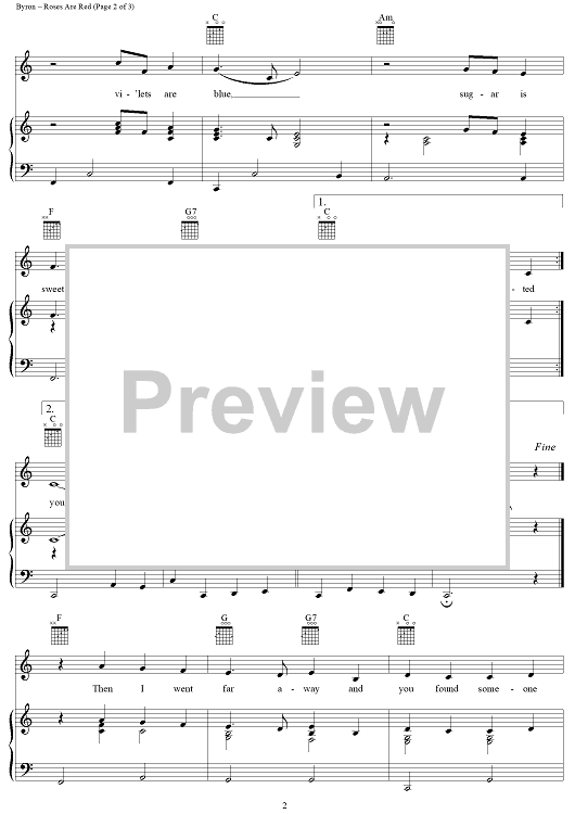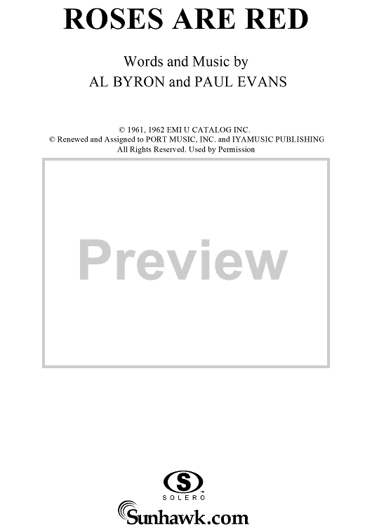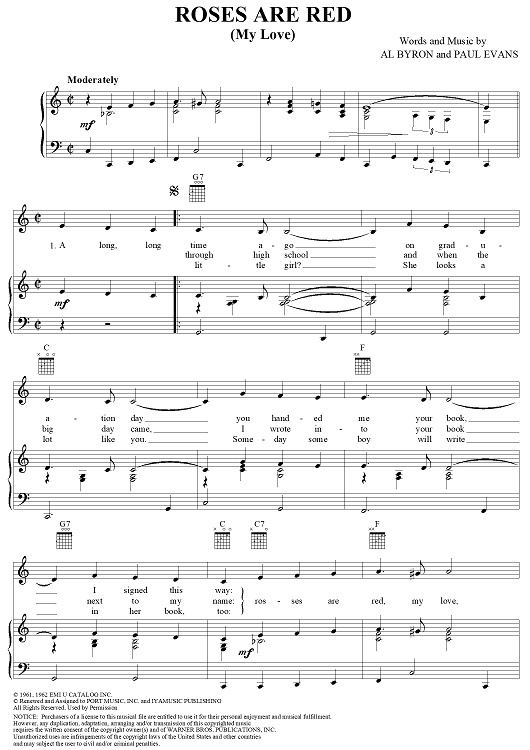 Digital Sheet Music for Roses Are Red (My Love) by Bobby Vinton, Paul Evans, Al Byron scored for Piano/Vocal/Chords; id:273569