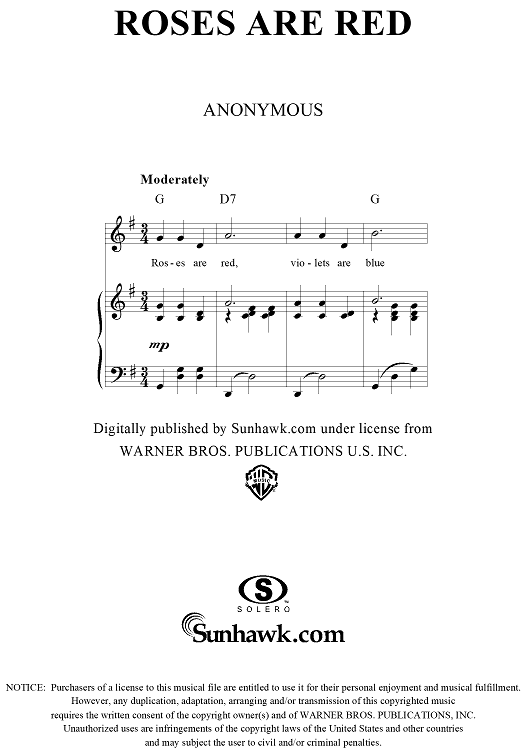 Digital Sheet Music for Roses Are Red by Unknown Writer scored for Piano/Vocal/Chords; id:219032