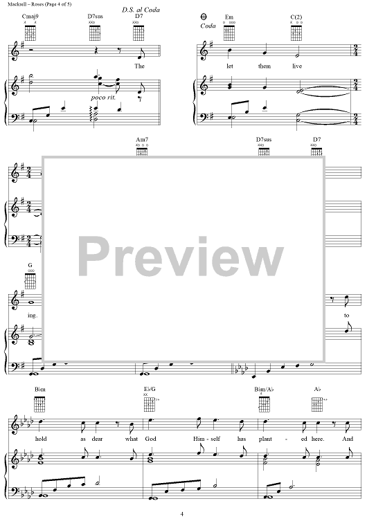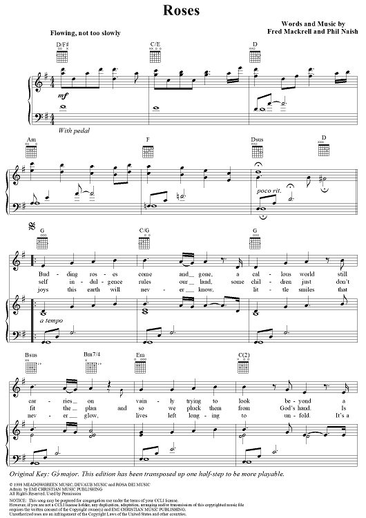Digital Sheet Music for Roses by Steve Green, Phil Naish, Fred MacKrell scored for Piano/Vocal/Chords; id:124103