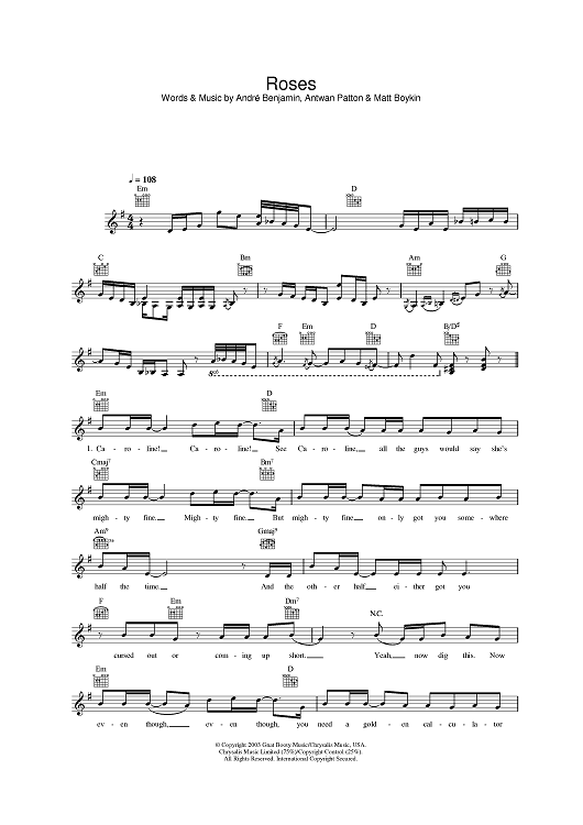 Digital Sheet Music for Roses by André 3000, Big Boi, OutKast, Matt Boykin scored for Lead Sheet; id:381926