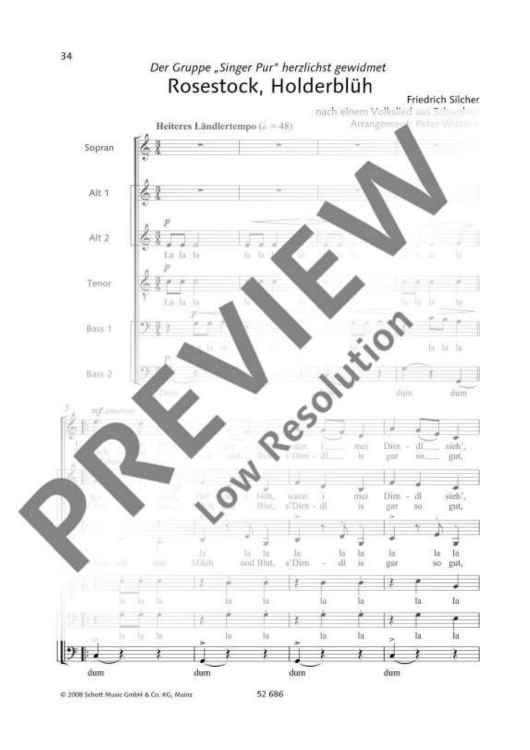 Digital Sheet Music for Rosestock, Holderblüh by Friedrich Silcher, Peter Wittrich scored for Mixed Choir (saatbb); id:481826