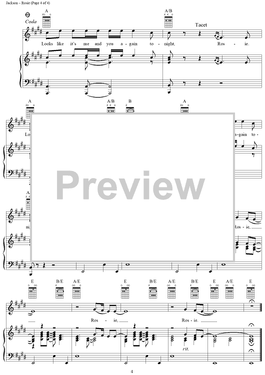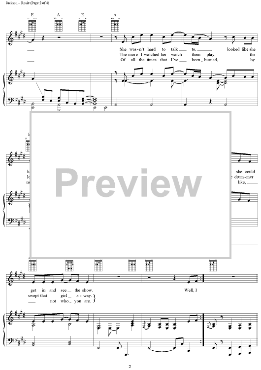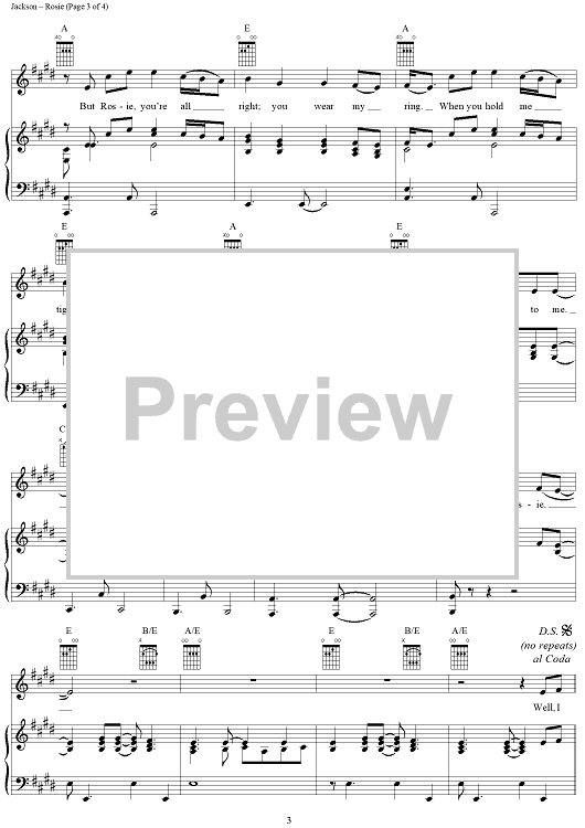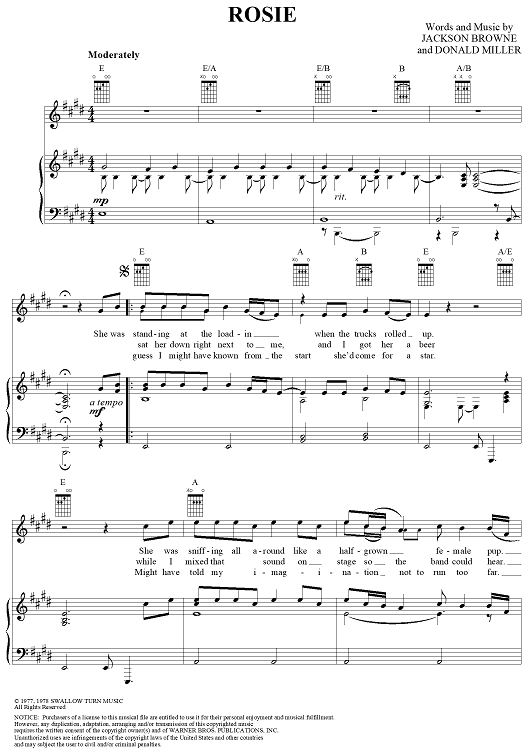Digital Sheet Music for Rosie by Jackson Browne, Donald Miller scored for Piano/Vocal/Chords; id:274068