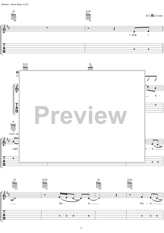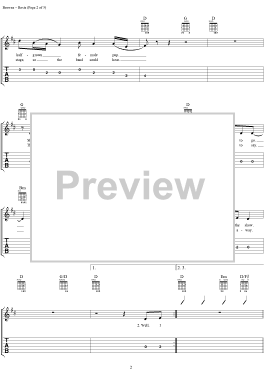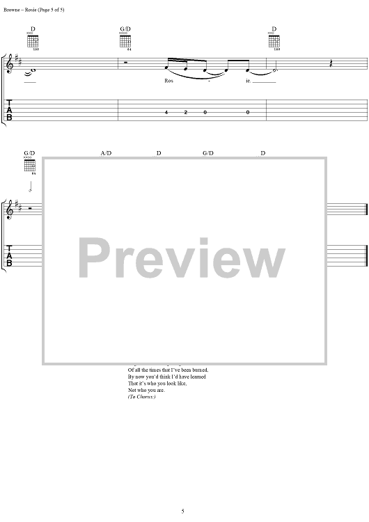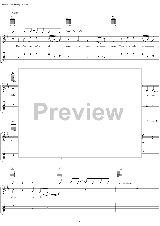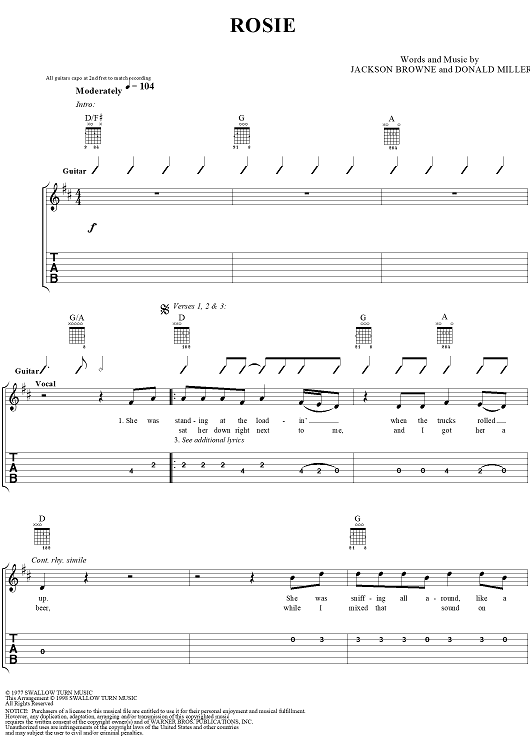 Digital Sheet Music for Rosie by Jackson Browne, Louis Martinez, Donald Miller scored for Easy Guitar Tab/Vocal; id:274069
