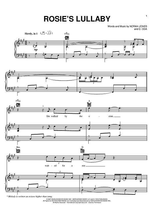 Digital Sheet Music for Rosie's Lullaby by Norah Jones, D. Oda scored for Piano/Vocal/Chords; id:397580
