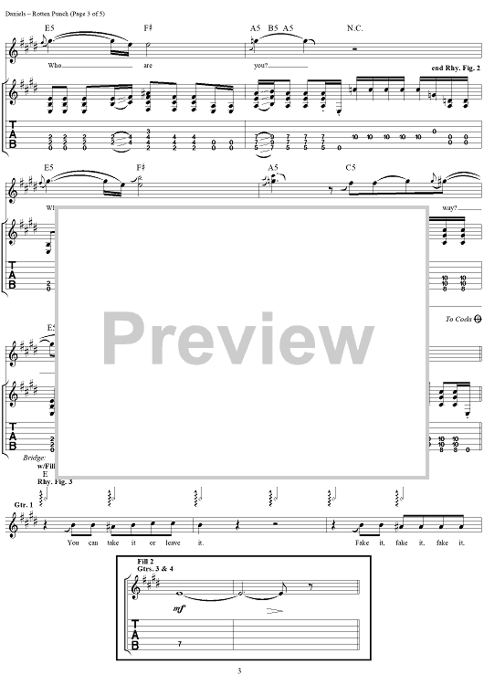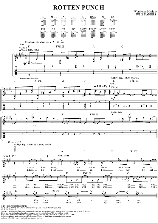 Digital Sheet Music for Rotten Punch by Julie Daniels, Star 69 scored for Guitar Tab/Vocal; id:272883