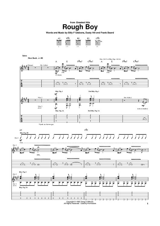 Digital Sheet Music for Rough Boy by Billy Gibbons, Dusty Hill, Frank Beard, ZZ Top scored for Guitar Tab; id:370735