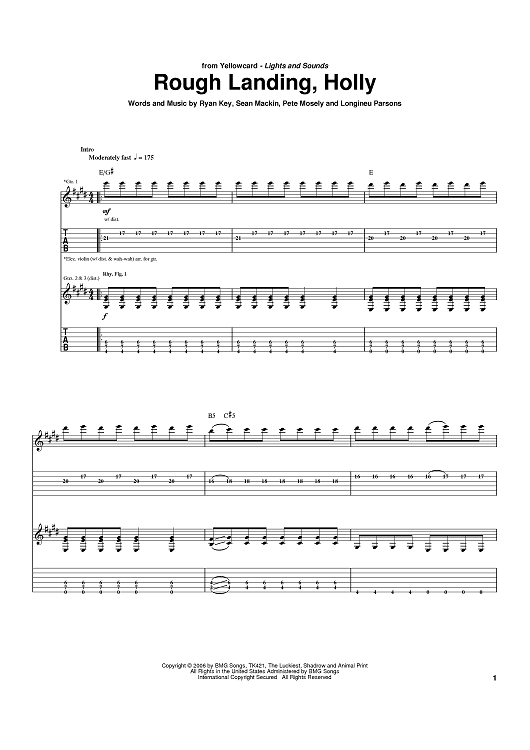 Digital Sheet Music for Rough Landing, Holly by Ryan Key, Sean Mackin, Peter Mosely, LP, Yellowcard scored for Guitar Tab; id:390970