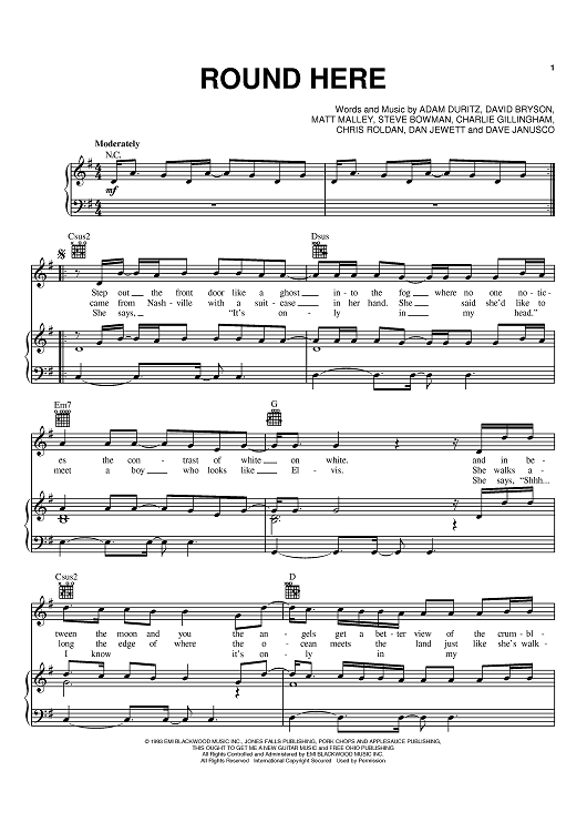 Digital Sheet Music for Round Here by Counting Crows, Adam Duritz, Dan Jewett, Chris Roldan scored for Piano/Vocal/Chords; id:368629