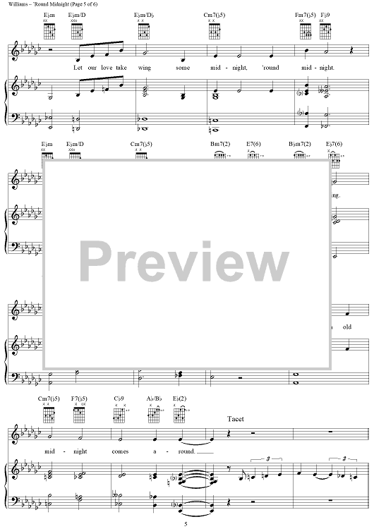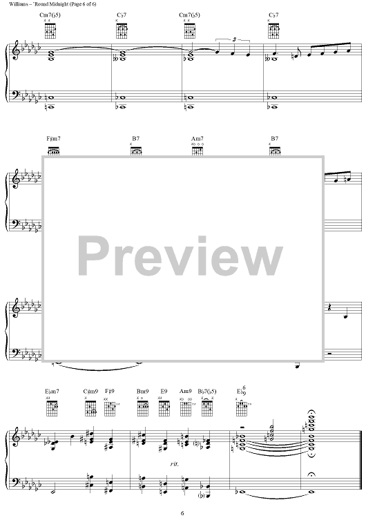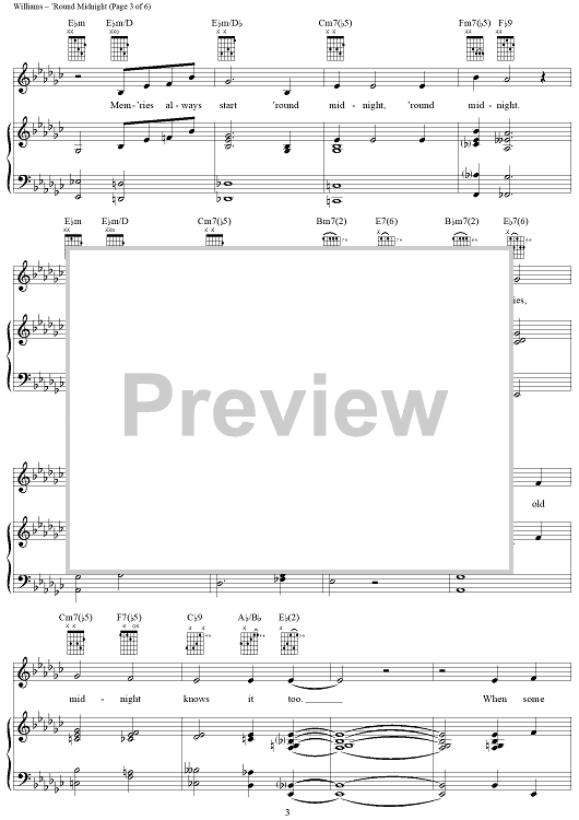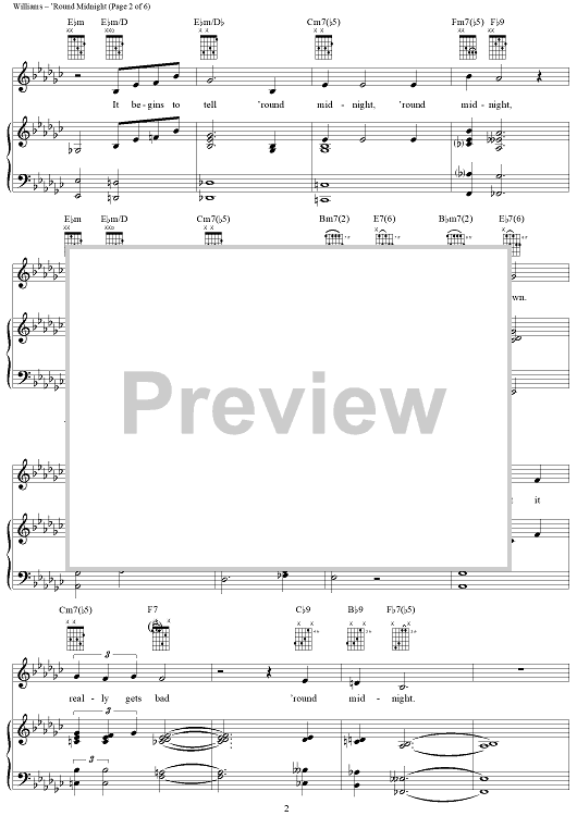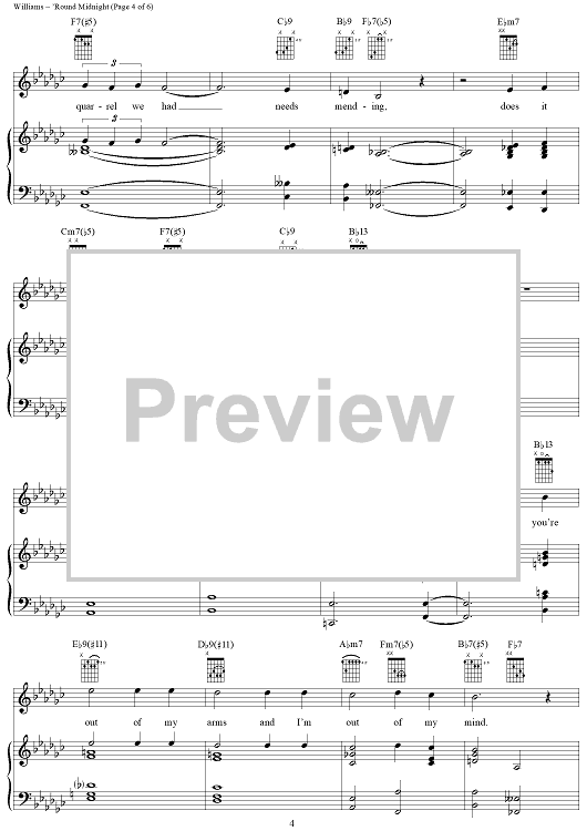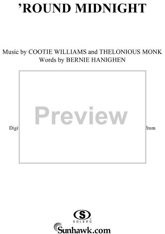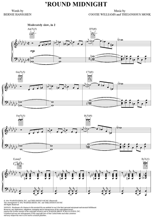 Digital Sheet Music for 'Round Midnight by Cootie Williams, Bernie Hanighen, Thelonious Monk scored for Piano/Vocal/Chords; id:289248