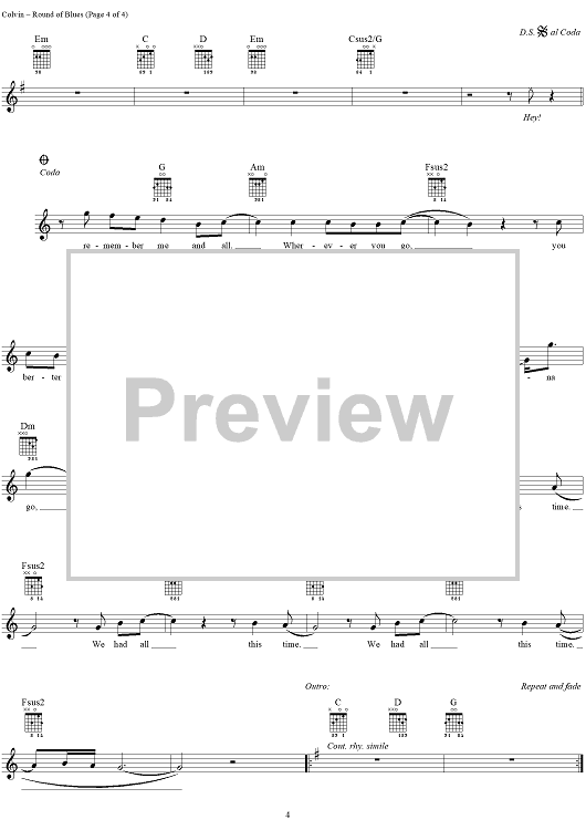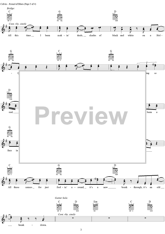 Digital Sheet Music for Round of Blues by Shawn Colvin, Larry Klein scored for Easy Guitar Tab/Vocal; id:236001