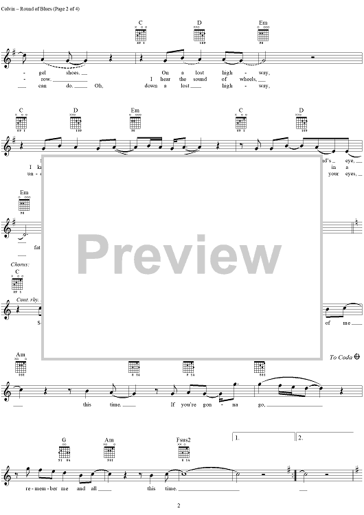 "Round of Blues" Sheet Music by Shawn Colvin