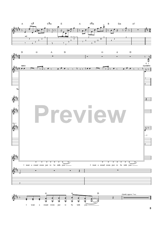 Digital Sheet Music for Round Room by Mike Gordon, Joe Linitz, Phish scored for Guitar Tab; id:372680